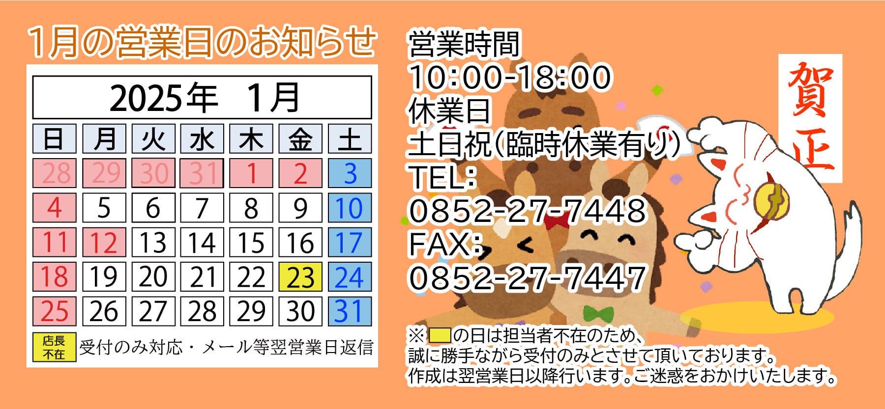 作成やチャット・ライン・メール等でのお問い合わせへの返信は翌営業日となります。